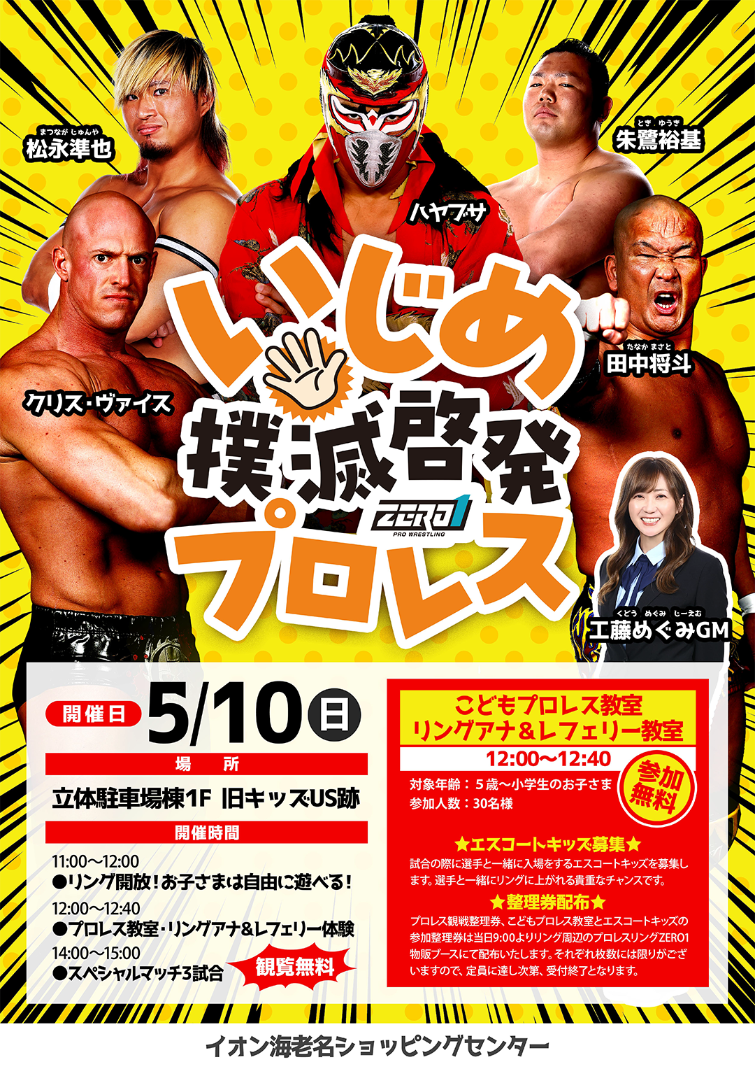 イオン海老名ショッピングセンターにて、いじめ撲滅啓発プロレス開催!