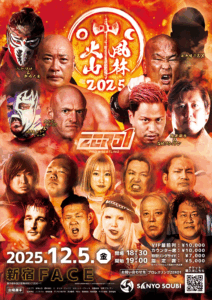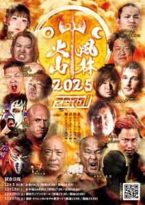 ◀ 過去のイベントを見る2025年12月5日『風林火山タッグトーナメント』12月5日(金)新宿FACE2025年12月13日『風林火山タッグトーナメント』12月13日(土)新木場1stRING2025年12月20日『風林火山タッグトーナメント』12月20日(土)横浜ラジアントホール2025年12月27日『風林火山タッグトーナメント』12月27日(土)浦安 オリエンタルホテル東京ベイ2026年1月31日湯〜とぴあ宝プロレスにZERO1がやってくる!プロレスで体も心も熱くなれ!