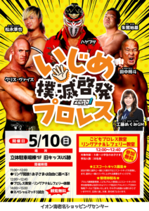 ◀ 過去のイベントを見る2026年4月25日4/25TOKYO SQUARE in Itabashi Rose「本旗揚げ戦」2026年4月29日4/29 千葉・ゆみ~る鎌取ショッピングセンター いじめ撲滅啓発プロレス開催!2026年5月2日5/2 浦安・オリエンタルホテル東京ベイ2026年5月9日5/9 新木場1stRING2026年5月9日5/9 新木場1stRING (ROSE)2026年5月10日5/10 神奈川・イオン海老名ショッピングセンター いじめ撲滅啓発プロレス開催!2026年5月16日5/16 都内エリア予定2026年6月13日6/13 新木場1stRING2026年6月21日6/21 岐阜・じゅうろくプラザ2026年6月28日6/28 新木場1stRING2026年7月4日7/4 大阪エリア予定2026年7月5日7/5 京都KBSホール2026年7月18日7/18 新木場1stRING2026年7月25日7/25 横浜ラジアントホール2026年7月26日7/26 浦安・オリエンタルホテル東京ベイ2026年8月7日8/7 東京・後楽園ホール