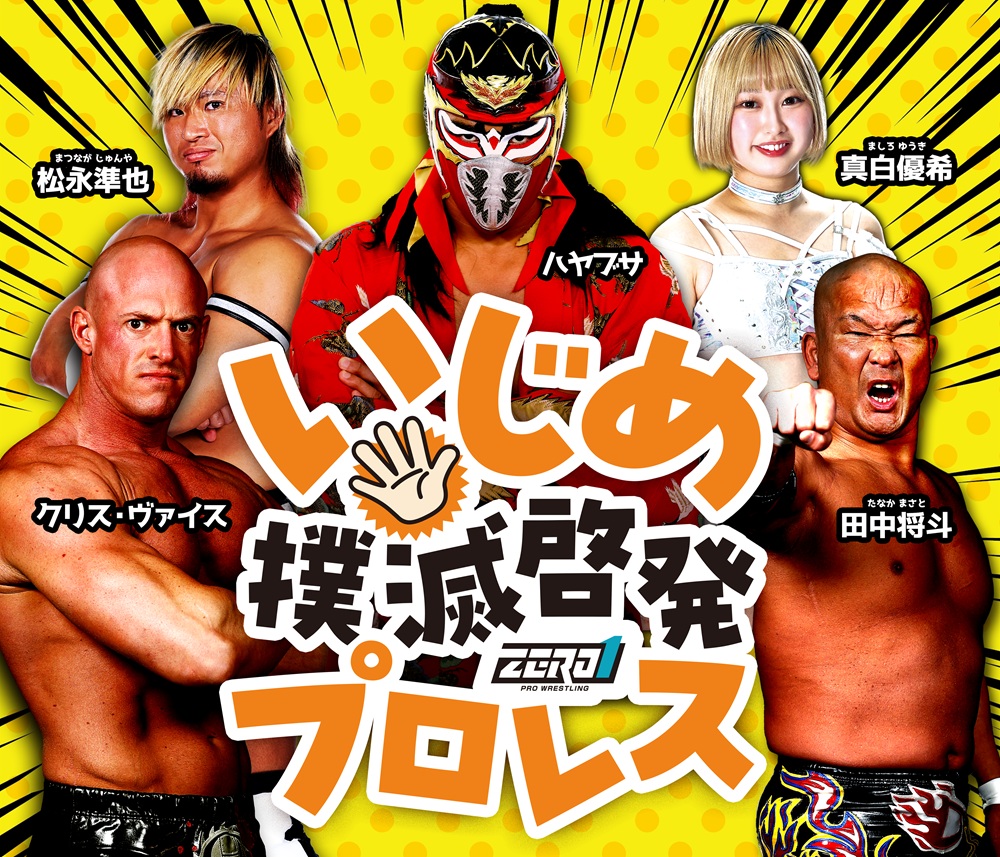 2月23日(月・祝)にレイクタウンmori「1F木の広場」の特設リングおいてプロレスリングZERO1が『いじめ撲滅啓発プロレス』を行います。